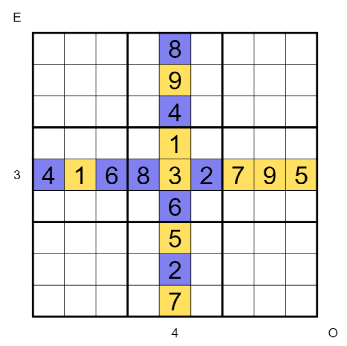 Normal sudoku rules apply. Furthermore, clues on top and to the left of the grid give the amount of even numbers in the first X cells from that position, where X is the first cell seen from that position. Clues below and to the right of the grid do the same, but with respect to odd digits.
