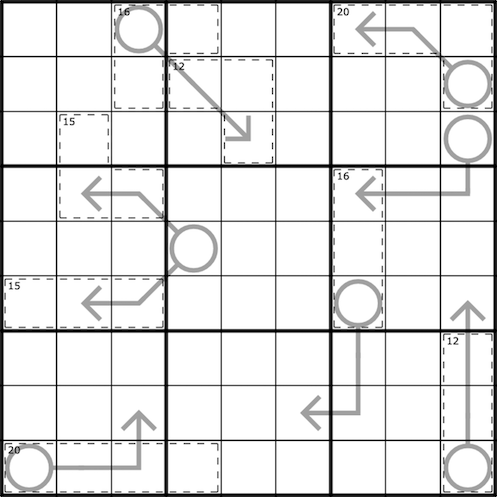 Arrow Sudoku: Digits on arrows must sum to the digit in the circle.