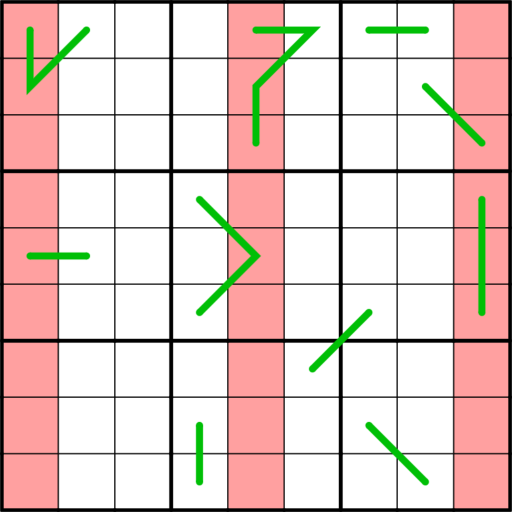 Normal Sudoku rules apply. Green lines are German whispers lines; adjacent digits on these lines must differ by at least 5. 159 rules apply: Each digit in column 1 indicates the position of 1 in its row (that is, if R3C1 is a 6, R3C6 is a 1). The same is true in columns 5 and 9 of the digits 5 and 9, respectively.