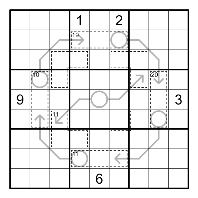 Standard Sudoku rules apply. Digits in cages may not repeat and sum to the small number in the corner, if given. Digits in circles give the sum of the digits along the corresponding arrow.