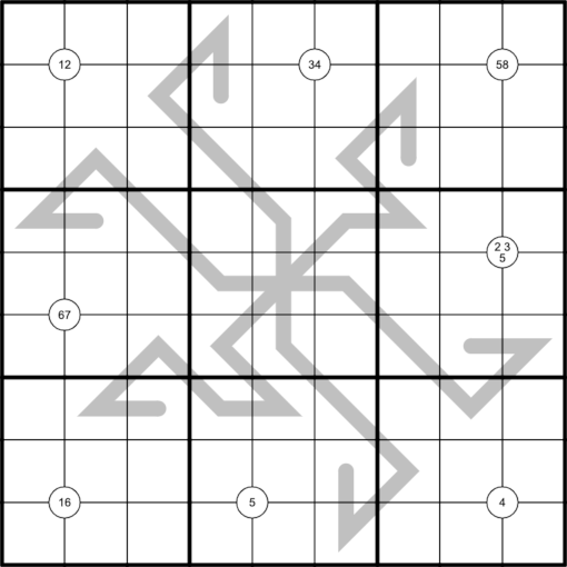 Digits in circles must be placed in one of the surrounding four cells.