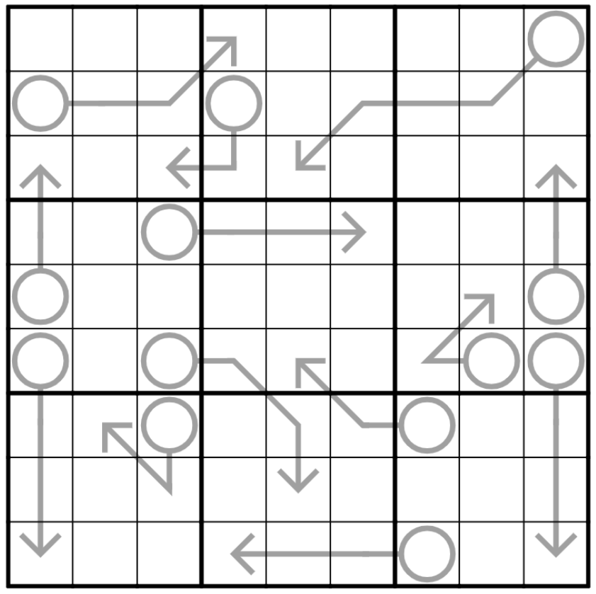 - Arrow. Digits along an arrow must sum to the digit in the circled cell.