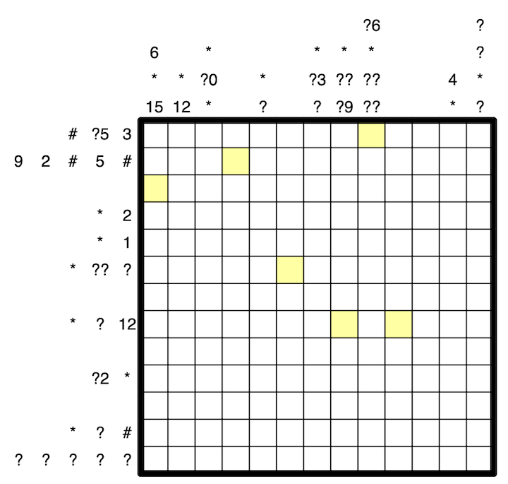 Hi @kjholt, that is not a correct interpretation of "?*". Apologies for the lack of rigor in the definition, but it is essentially saying that the clue could have either a single or double digit total. If it was given to be just a single digit total "?" would be written, and for double digit, "??".