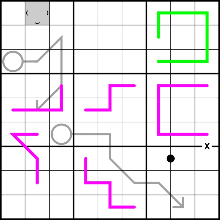 Jede violette Linie muss eine Reihe aufeinanderfolgender und sich nicht wiederholender Ziffern enthalten(die in jeder Reihenfolge sein können).
