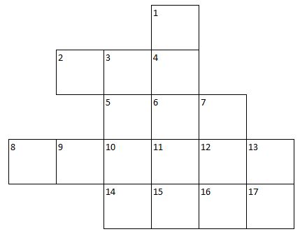 The puzzle consists of 17 fields. There is one letter in every field, in a way that every one of the 7 given words can be found in a connected way in the matrix. Every word may start in any field. In each case, the next letter of every word must be in a horizontally, vertically or diagonally connected field. The paths of the words may cross several times.