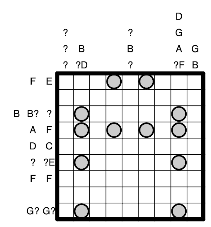 This was the last of the puzzles in my posting backlog, and should be easier than the previous two. I have been having a lot of fun with this series, and I hope you all are enjoying solving it half as much as I am setting it. I still do have quite a few more ideas for this series in the future, most of which are very wildly different than any I have posted so far, and I hope you look forward to them.