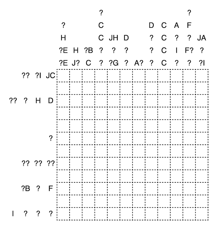 Lösungscode: Row 4, Row 9, S for blackened cells
