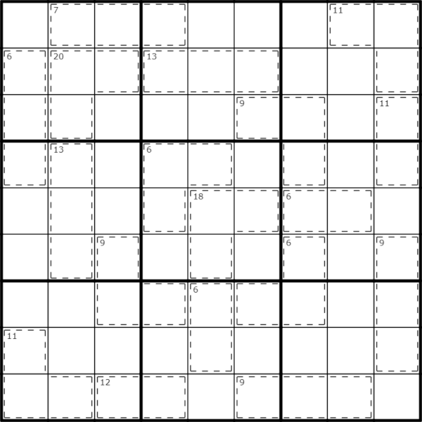 Killer Sudoku: Digits in cages must not repeat and must sum to the indicated total.