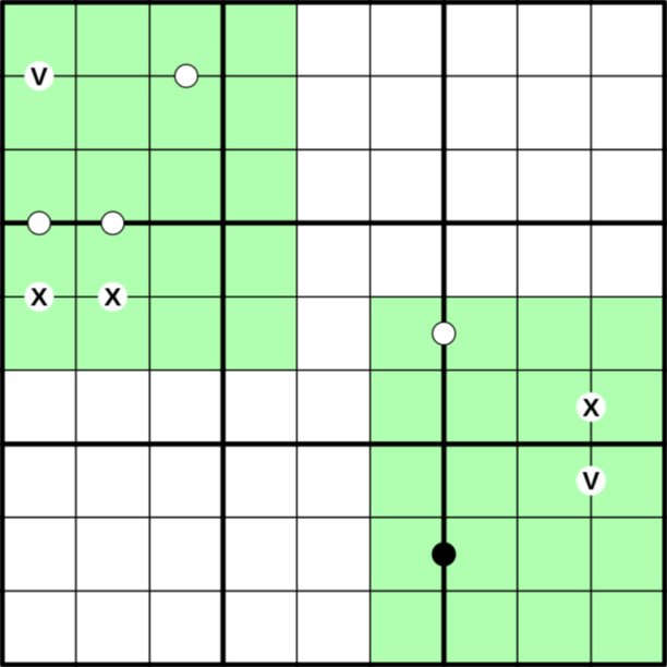 Was able to fill in almost the whole green areas in 2 or 3 different ways without breaking the puzzle right away (after heavily constraining it with pencilmarks). Ultimately went for a specific way and ended up working. Anyone care to explain how to disambiguate this?