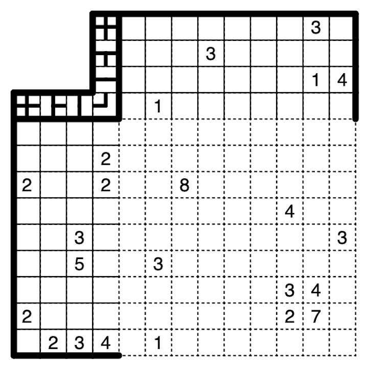 This is a really nice ruleset, and I think the 9x9 executes on it very well. It's difficult to notate, but that's made up for by the additional variety of deductions that come from the Fillomino part of the ruleset.
