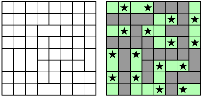 Solution code: Along row 8, then column 8: if the cell is a star, give *. Otherwise give S for shaded or U for unshaded. In the above 2-star example, the solution code is USUU*S*U U*U*SSSU.