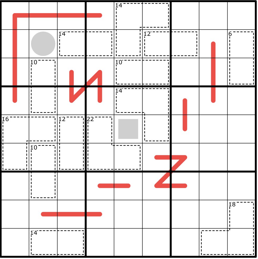 - Zusätslich gelten die Killer Sudoku Regeln, die Ziffern in ein Killer cage dürfen sich dabei nicht wiederholen.