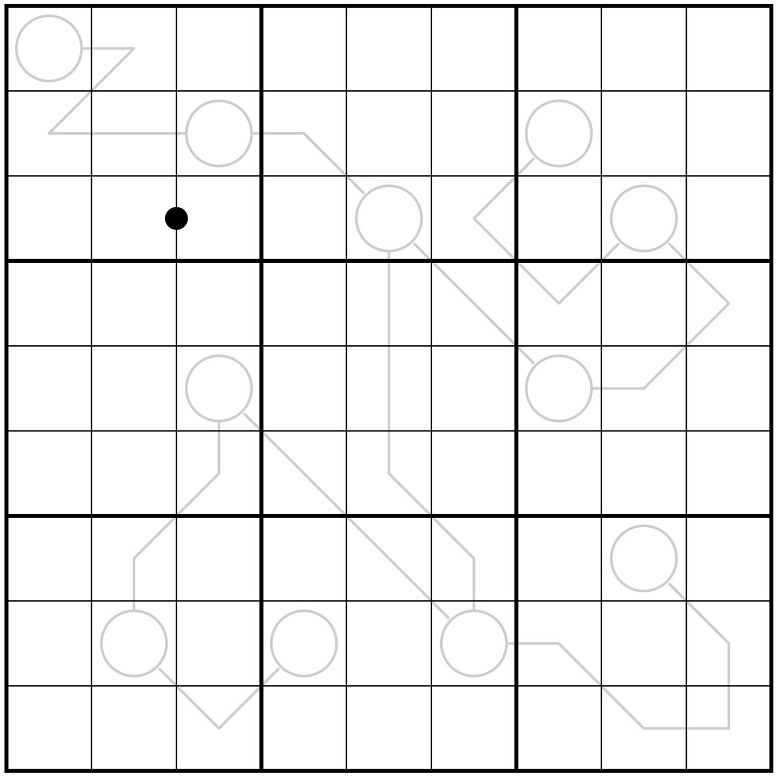Die Kreise fungieren als "Minesweeper"-Hinweise. Zellen mit einem Kreis sind immer ungefärbt, und ihr Wert ist die Anzahl der gefärbten Zellen in der umgebenden 3x3-Fläche (d.h. die bis zu acht Zellen, die die Zelle mit dem Kreis entweder orthogonal oder diagonal berühren).