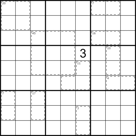 - The cells in each cage must sum up to the number in the top left corner of the cage (if given)