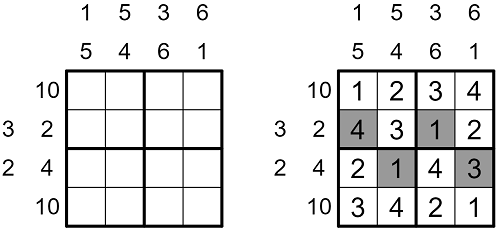 Additionally, shade some cells such that the clues outside the grid indicate the sums of the digits in contiguous blocks of white cells in the respective row or column. Every question mark represents a number (1-45). Blocks have to be separated by at least one shaded cell.