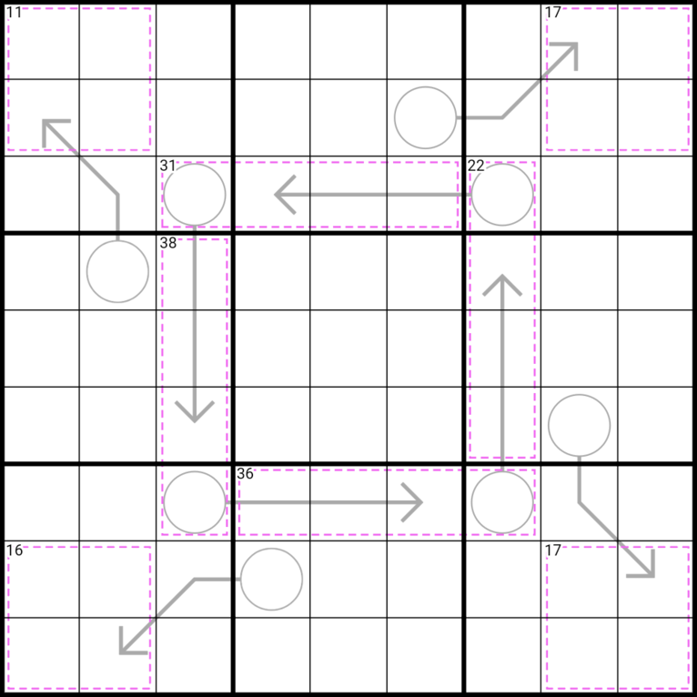- Arrow: Digits on an arrow line sum to the digit in the connected circle.