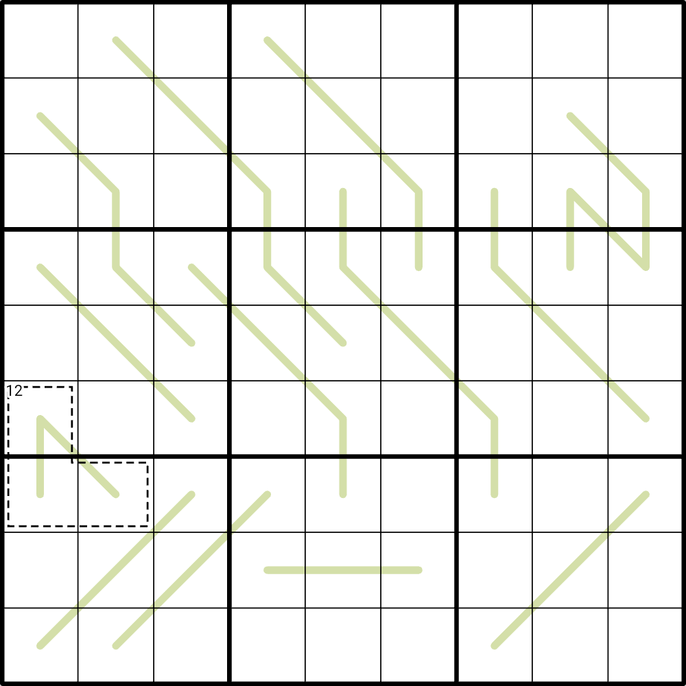 1. Normal 9x9 sudoku rules apply: In every row, column and in every 3x3 box the digits from 1 to 9 have to appear atleast once with no repeats.