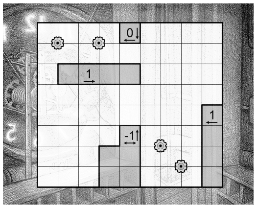 Very nice introduction puzzle ! Figuring out the gear rule was not obvious for me but it was good fun after that. Also, very nice visual with the mechanical design. Reminded me of a comics called "Cités obscures". Thanks :)