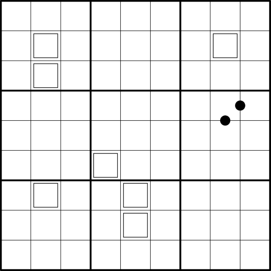 Digits in cells separated by a black dot have a 2:1 ratio. Not all possible dots are necessarily given.