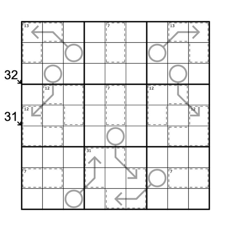 Normale Sudoku-Regeln gelten: Platzieren Sie die Ziffern 1 bis 9 jeweils einmal in jeder Zeile, Spalte und Box.