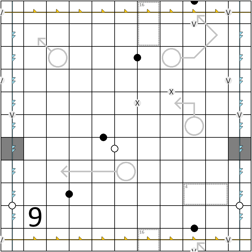 Cells separated by a black dot must be in a 2:1 ratio, Cells separated by a white dot must be consecutive.