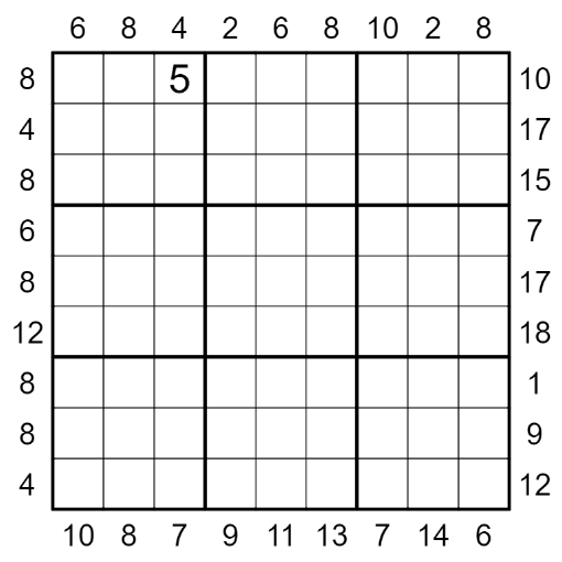 + The hints on the bottom indicate the sum of the first consecutive set of ODD digits in the indicated column from bottom to top. (variant)
