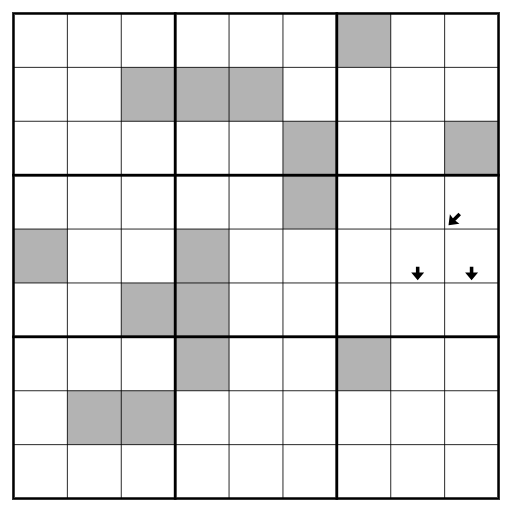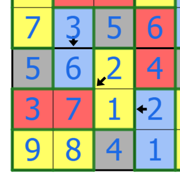 The digit in a cell with an arrow indicates how many dominoes have at least one cell that appears in the given direction.