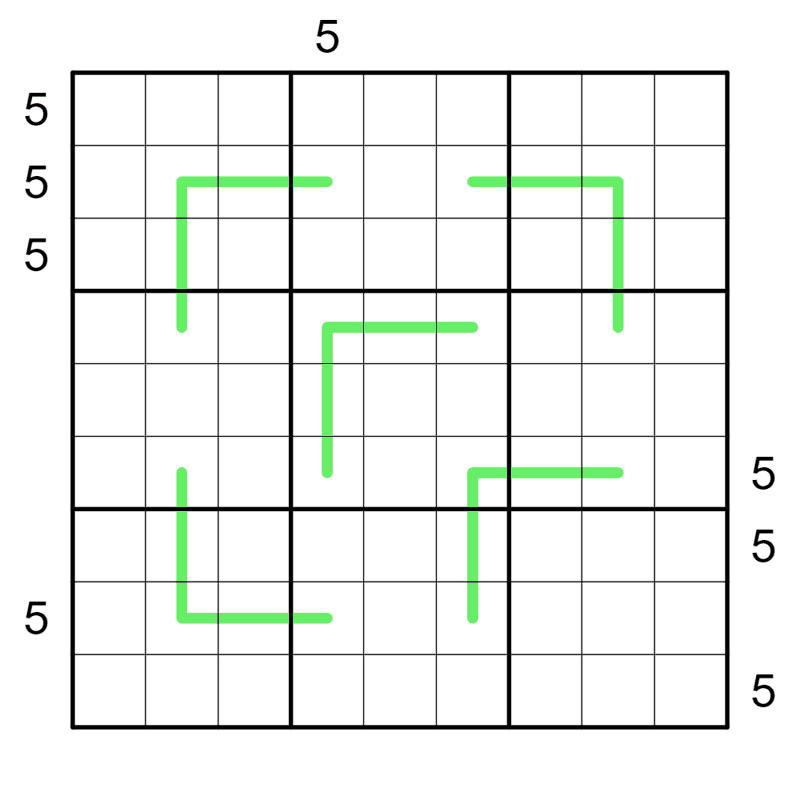 - Clues outside the grid give the digit that must appear in the Xth cell in the row or column from that direction, where X is the first digit in that row or column seen by the clue.