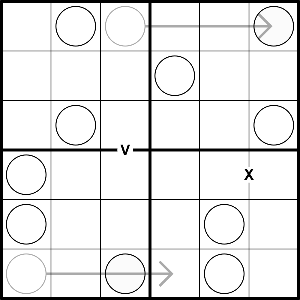 XV: Digits in cells separated by an X must sum to 10; digits in cells separated by a V must sum to 5. ALL Xs and Vs are given, so there is a NEGATIVE CONSTRAINT.