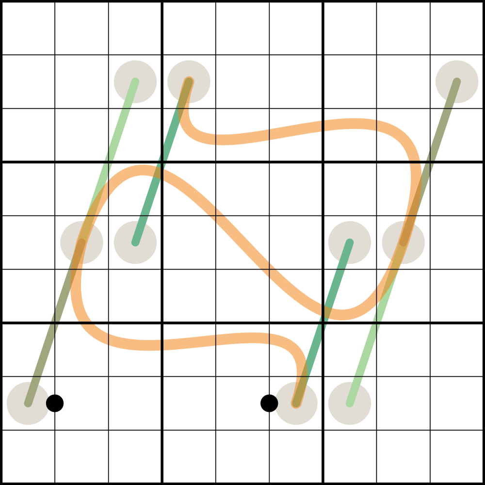 Digits joined by a black dot are in 1:2 ratio. Not all possible dots are given.