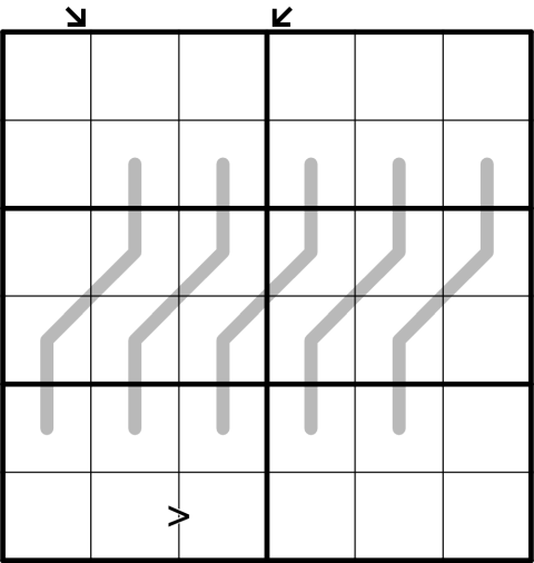 Grey lines are entropic AND modular; i.e every 3-cell sequence on a line must contain a digit from {1,2,3}, {4,5,6}, {7,8,9}, {1,4,7}, {2,5,8} and {3,6,9}.
