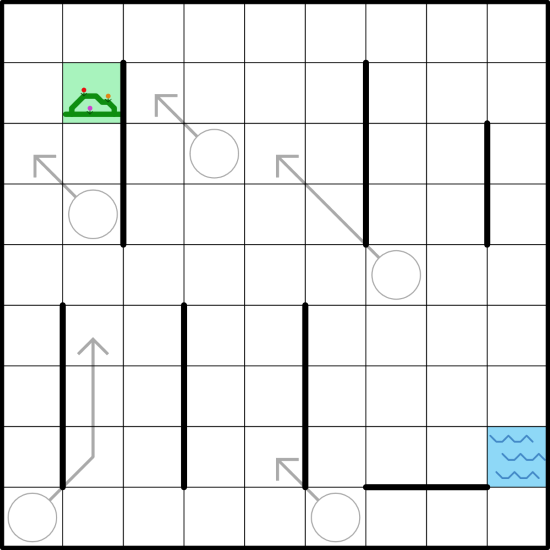 -- Every thermometer bulb in the middle of a region must be on a corner of the path. The bulb in the first cell in a region on the path may or may not be on a corner of the path.