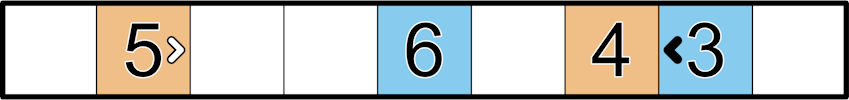 - Wenn die Ziffer n in einer Zelle mit einem weißen Pfeil steht, muss die Ziffer n Felder in Pfeilrichtung eine aufeinanderfolgende Ziffer zu n sein.