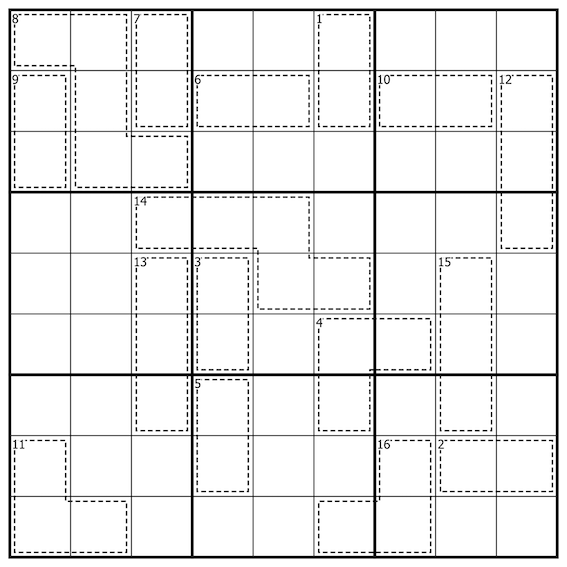 This puzzle uses the unique ordered sums constraint; a twist on killer cages where rankings are given instead of actual totals. Enjoy!