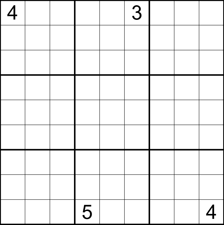 - Antiknight rule applyes (Cells that are knight's move in chess away from each other cannot contain the same digit, for example digit in row 2 dolumn 2 cannot be the same as digit in row 4 column 1 etc.)