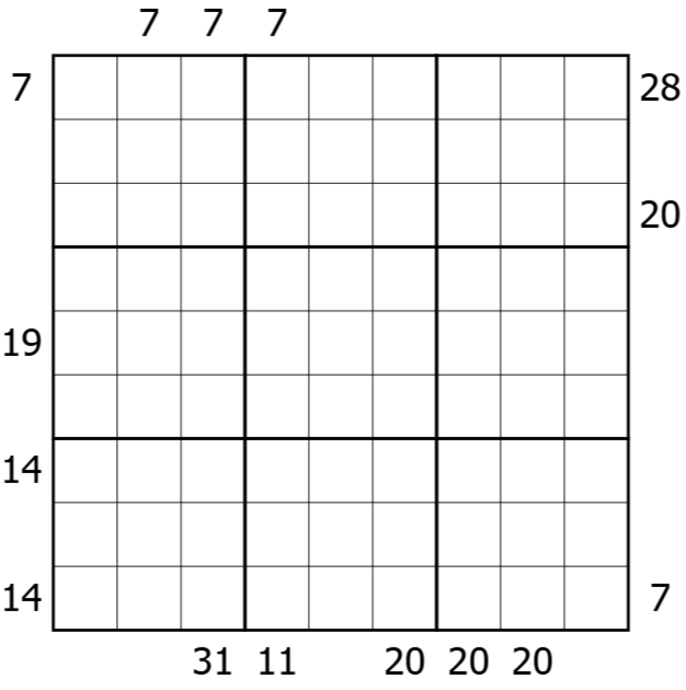Hinweise außerhalb des Gitters geben die Summe der ersten