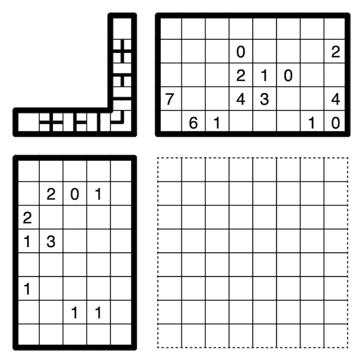 A clue outside the grid indicates how many times the corresponding line shape (i.e. a cross, branch, straight line, turn, or empty cell) appears in the corresponding row or column, irrespective of the line shape's rotation.