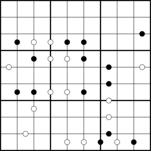 Normal Sudoku rules apply. KROPKI PAIRS- Numbers with a white dot between them are consecutive. Numbers with a black dot between them are in a ratio of 2:1. Not all possible dots are given. Consider the three types of numbers in this ruleset.