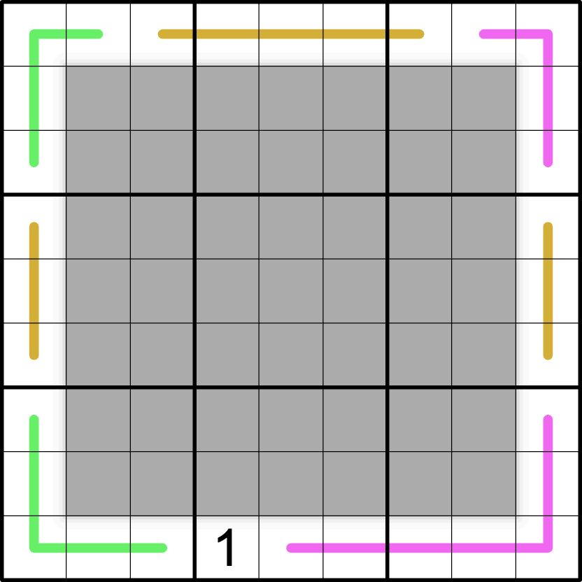 Along gold lines, digits do not repeat and no two digits appearing anywhere on the line can be consecutive.