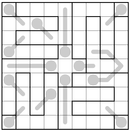 Irregular sudoku: Each row, column, and 9-cell region contains the digits 1-9. There are 8 u-shaped regions. The ninth region is non-contiguous, consisting of the central 5 cells and the 4 corner cells.