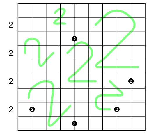 If the end cell on a green line contains the digit X and the next cell along the line contains the digit Y then the cell at position X on the line must contain the digit Y.This rule applies separately starting at each end of the line counting the end of the line as position 1, the next cell along as position 2, etc...