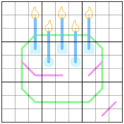 Box borders divide blue candles into segments with the same sum.