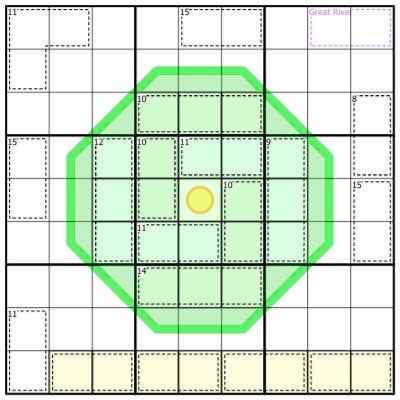 Begin by transcribing the "Great River" labelled digits from the previous puzzle into the cage in box 3.