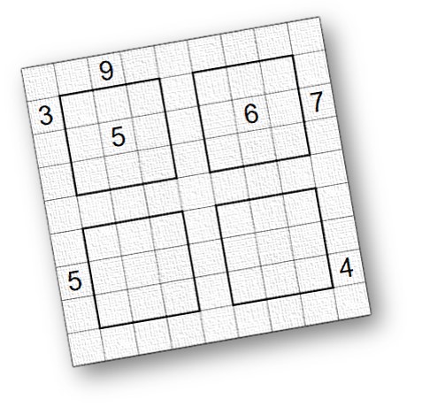 Place each digit from 1 to 9 in every row, column, and marked 3×3 region.