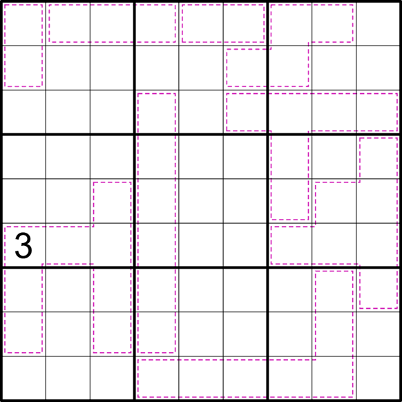 Orthogonally connected purple cages need to follow these 3 rules: