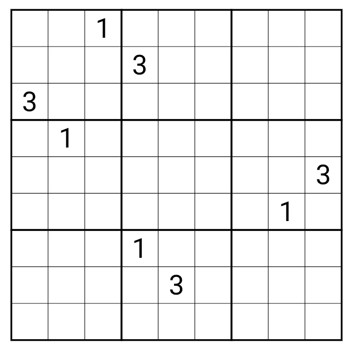 • Entropy. Each 2x2 box in a grid has contain low digit {1,2,3}, middle digit {4,5,6} and high digit {7,8,9}.