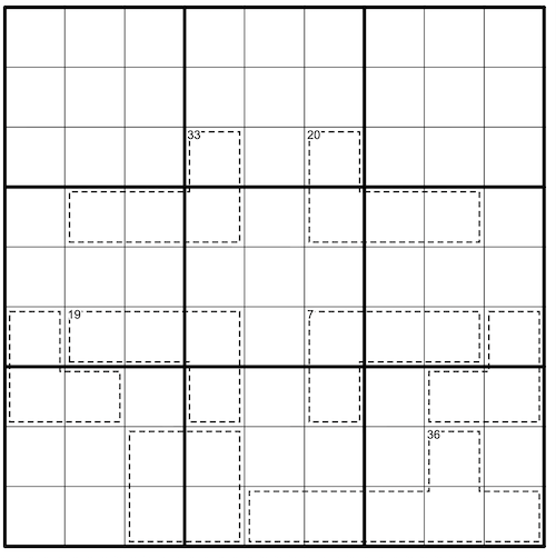 Digits in cages sum to the total in the top left corner (if given) and each cage must contain exactly one repeat digit.