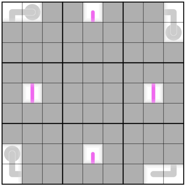 Renban: Values on a thick purple line form a set of consecutive numbers with no repeats.