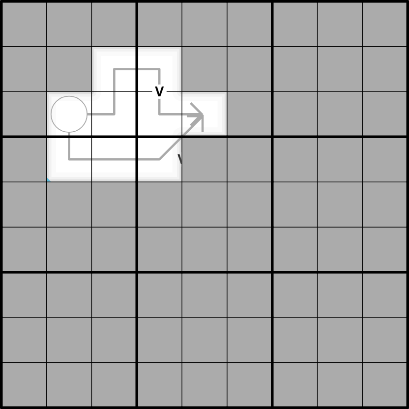 Cells joined by an X sum to 10. Cells joined by a V sum to 5.