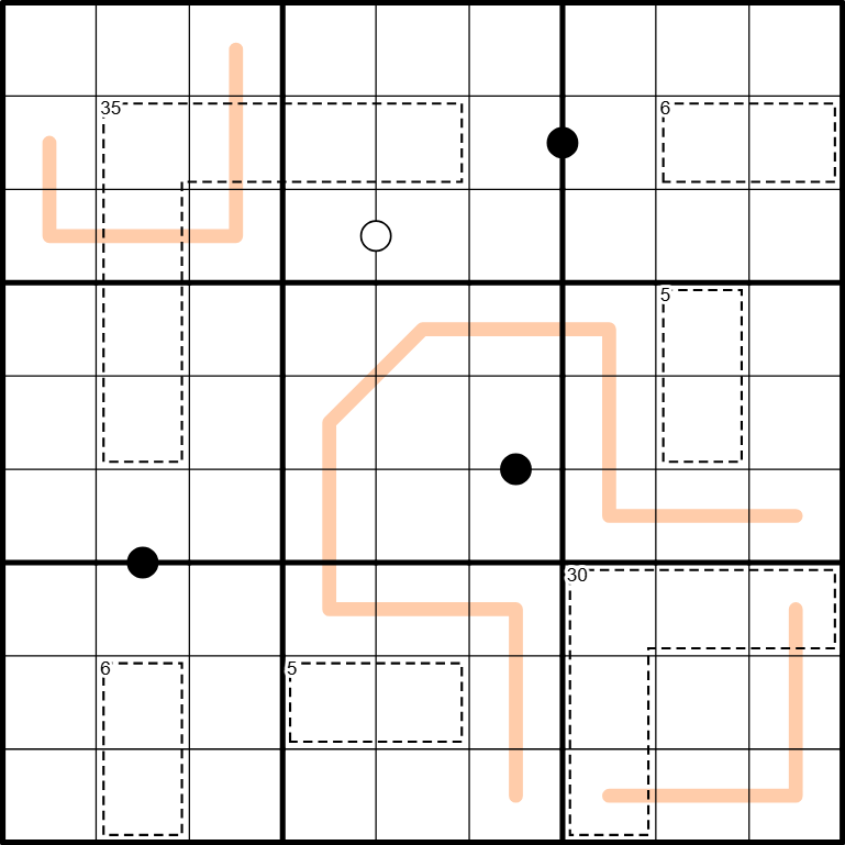 Entropy Lines: Each set of 3 adjacent digits on an peach entropy line must contain a low digit {1,2,3}, a middle digit {4,5,6}, and a high digit {7,8,9}.